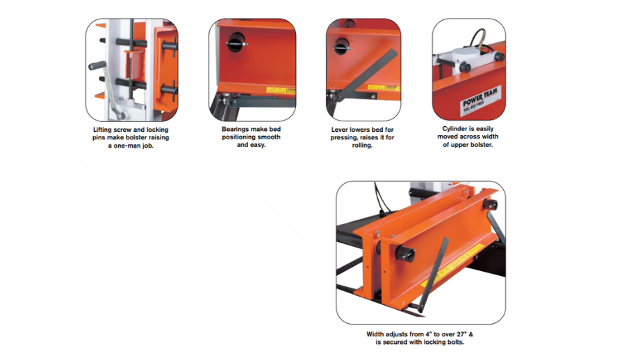 - Roll-Bed® (máy ép có giàn con lăn) nguyên , được cấp bằng sáng chế cho khả năng dễ dàng tải và dỡ hàng bằng cần trục hoặc thiết bị nâng khác, hỗ trợ tải trọng lên đến 1361 kg.